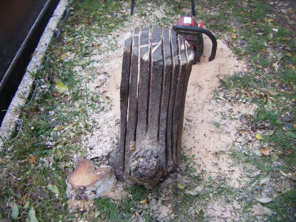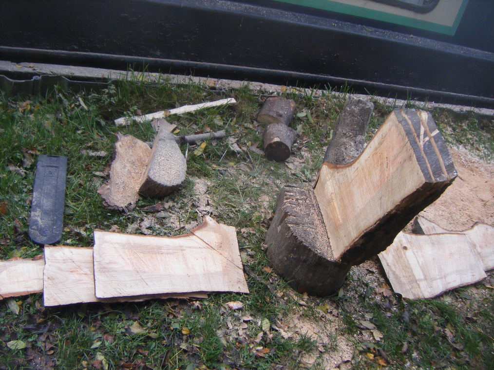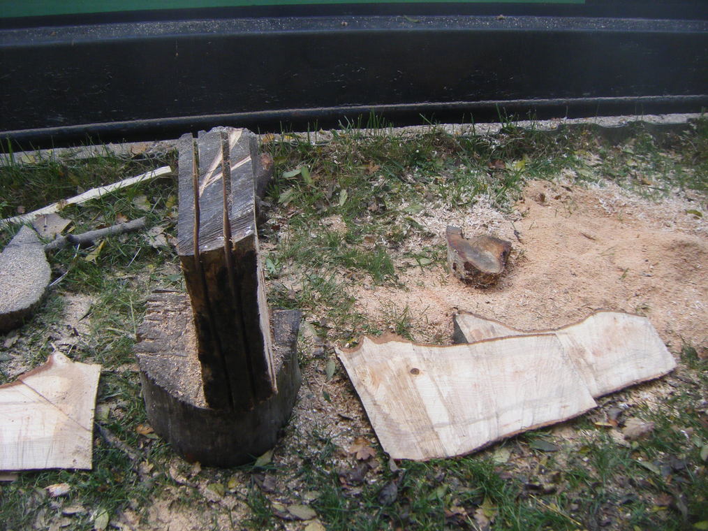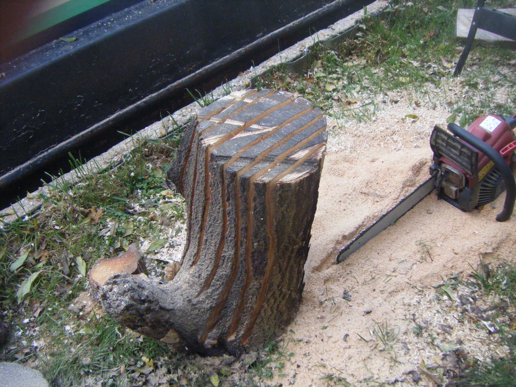 Once all the planks are nearly through I can stand the log on my chopping block and cut through each plank alternating side to side so as to maintain a solid base.