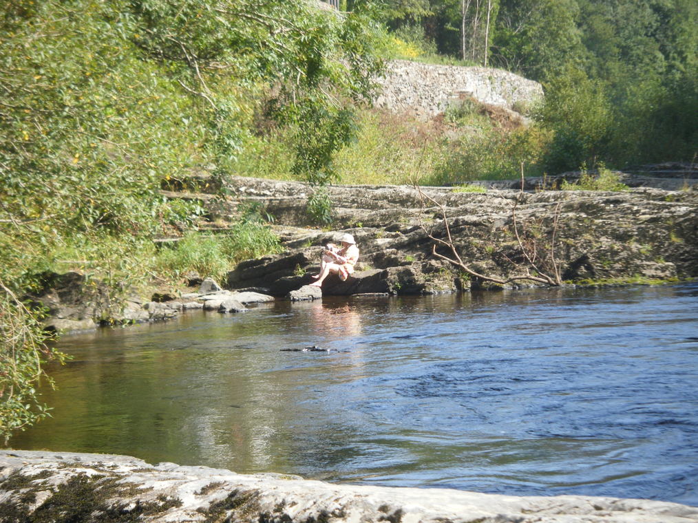 It took us nearly two hours to walk the one and three quarter miles to the falls what with the paddling, fish watching, gongoozling the rescue team and taking pictures.